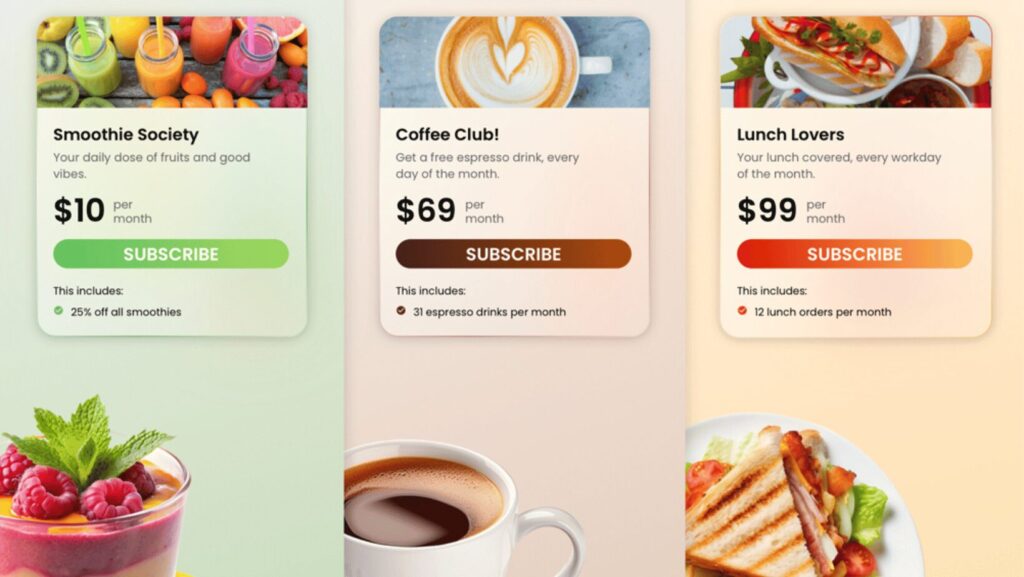 Restaurant memberships are pretty similar to other subscriptions: customers pay a set fee (usually monthly or annually) in exchange for specific services or rewards. That could be 10% off every order, free drink refills, exclusive items… or whatever you want, really!